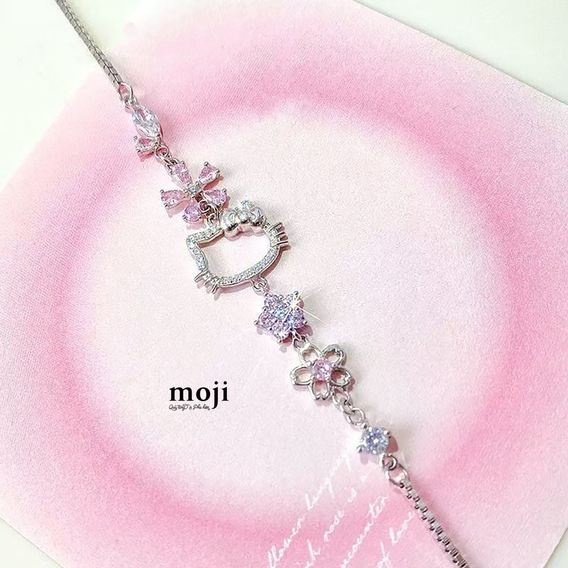 A.840 Vòng đeo tay Sanrio family Hello Kitty face line flower đính đá