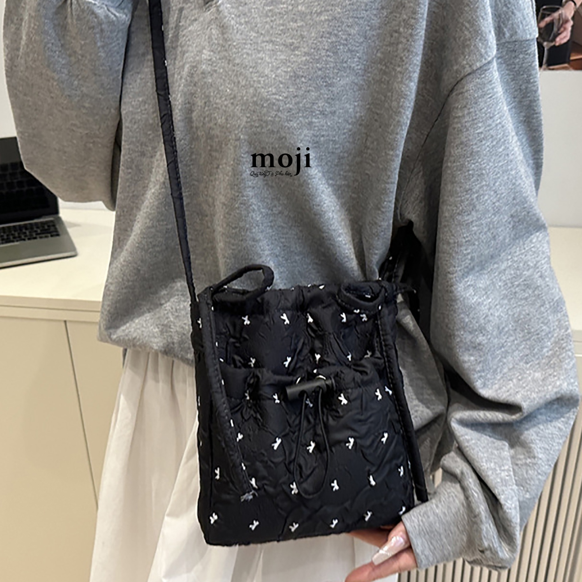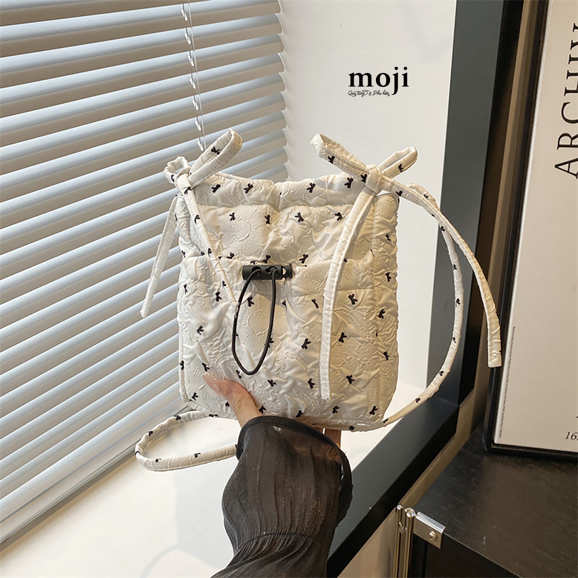 ✨ Túi đeo chéo vải với thiết kế nơ dập nổi tinh tế, nổi bật trên nền màu trẻ trung.