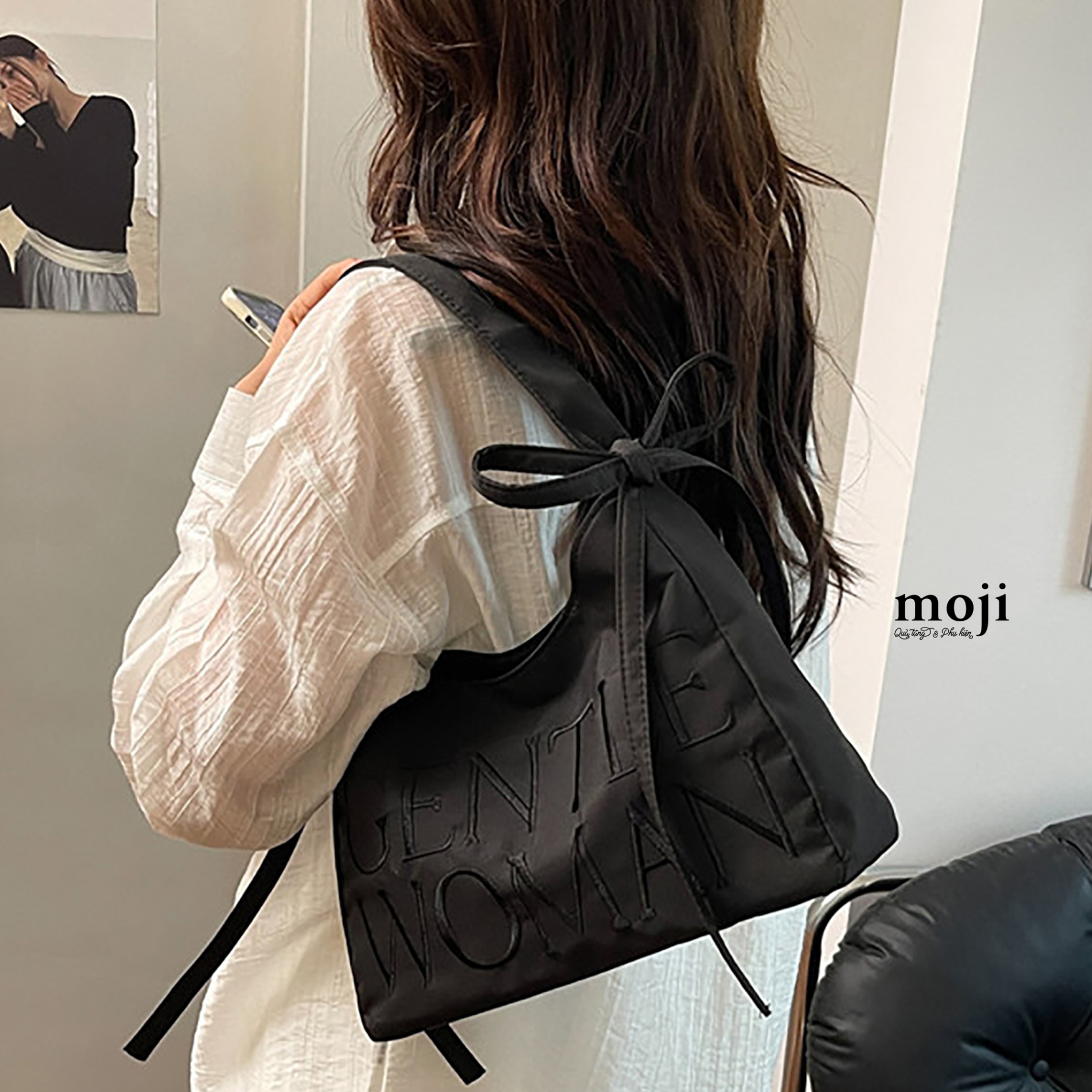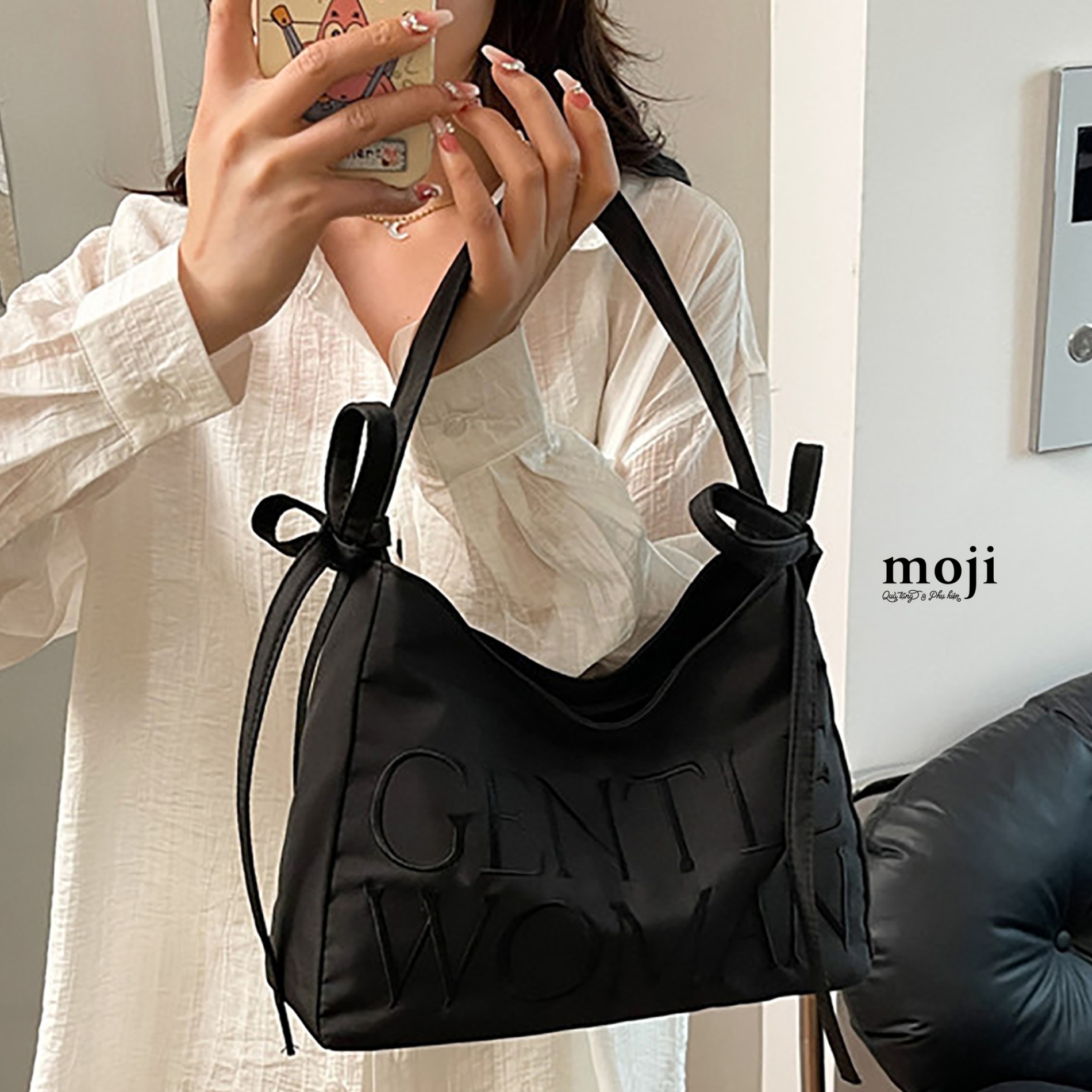 B.202 Túi đeo vải Gentle Woman text nổi quai lớn phối nơ hai bên 21x28